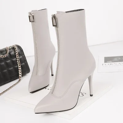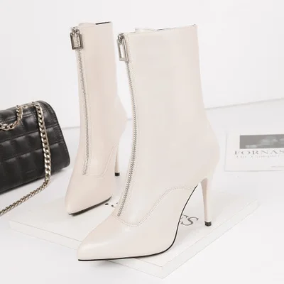 NEW 2019 Fashion sexy pointed high heels stiletto was thin in the tube boots banquet front zipper thin