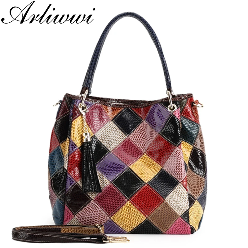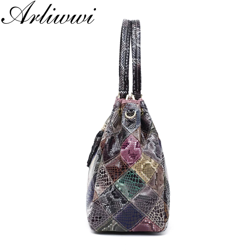 Sale Arliwwi Brand Classical Snake Pattern Ladies Tote 100% Genuine Leather Fashion Women's Real Cowhide