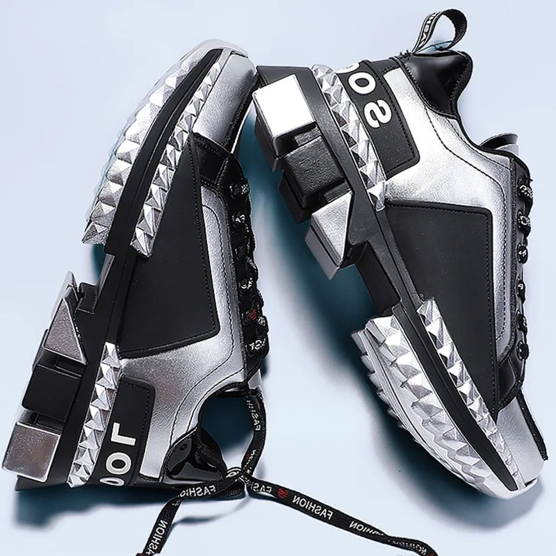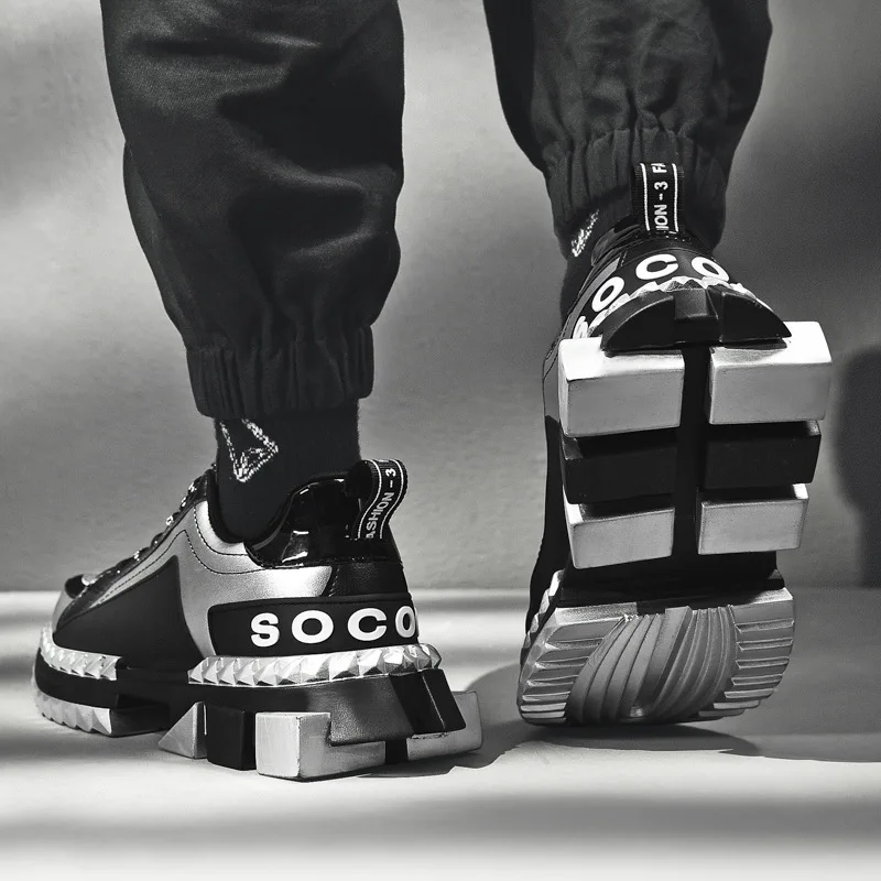 Hot Hip Hop Streetwear Chunky Sneakers Men Leather Casual Shoes Men Thick Bottom Fashion EVA Tenis Masc