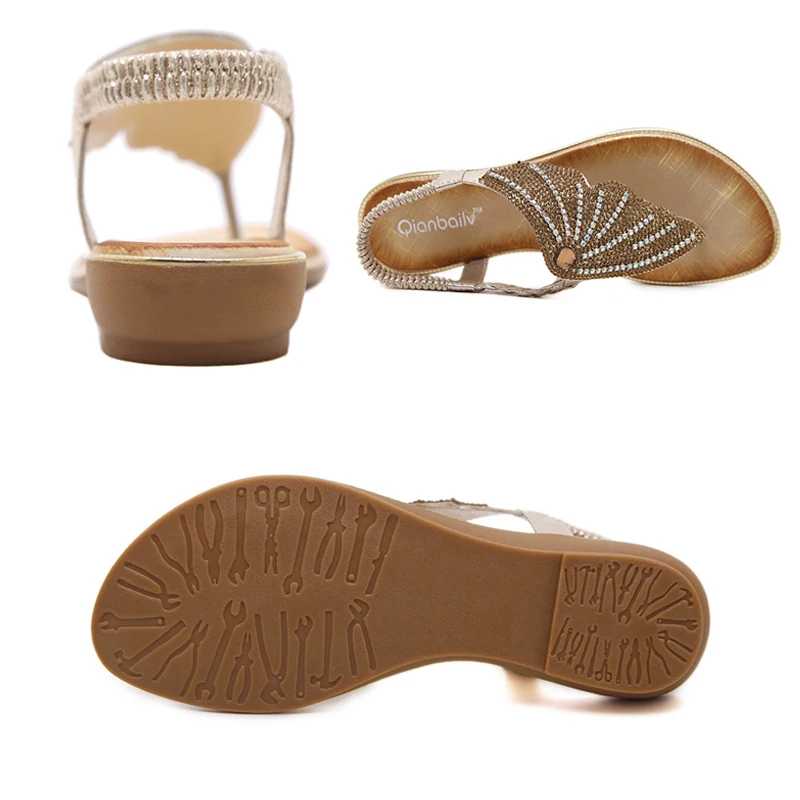 Buy Summer Beach Sandals Flip Flops Women Shoes Fashion Wedges Sandals Crystal Ladies Shoes Clip Toed G