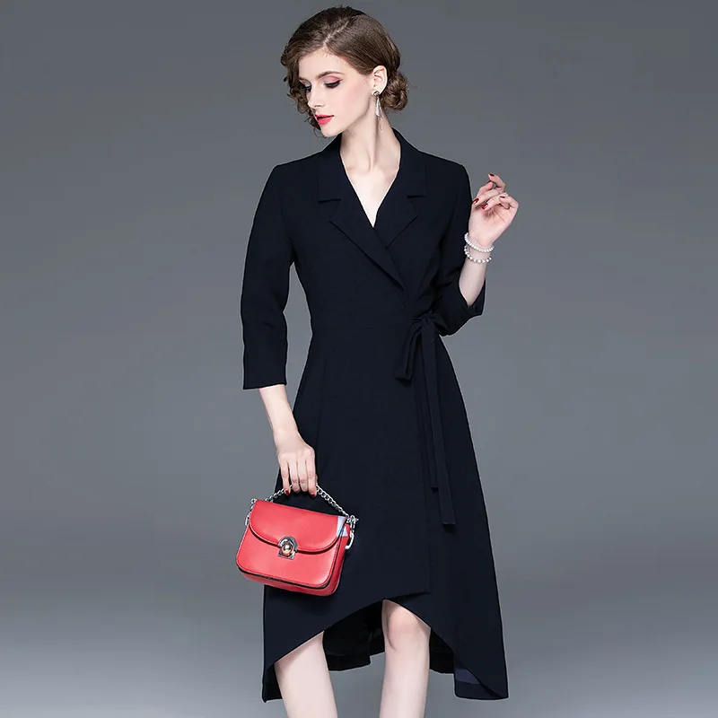 Get Women's 2019 Autumn New Fashion Irregular V-neck Cropped Sleeve Midi Dress