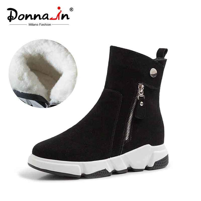 Get Donna-in Natural Fur Women Ankle Boots Platform Plus Size Real Leather Warm Wool Winter Shoes Thick
