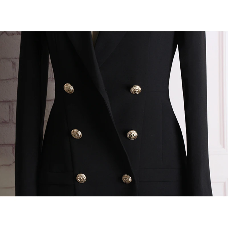 NEW HIGH QUALITY New Fashion 2018 Runway Designer Dress Women's Long Sleeve Notched Collar Double Breas