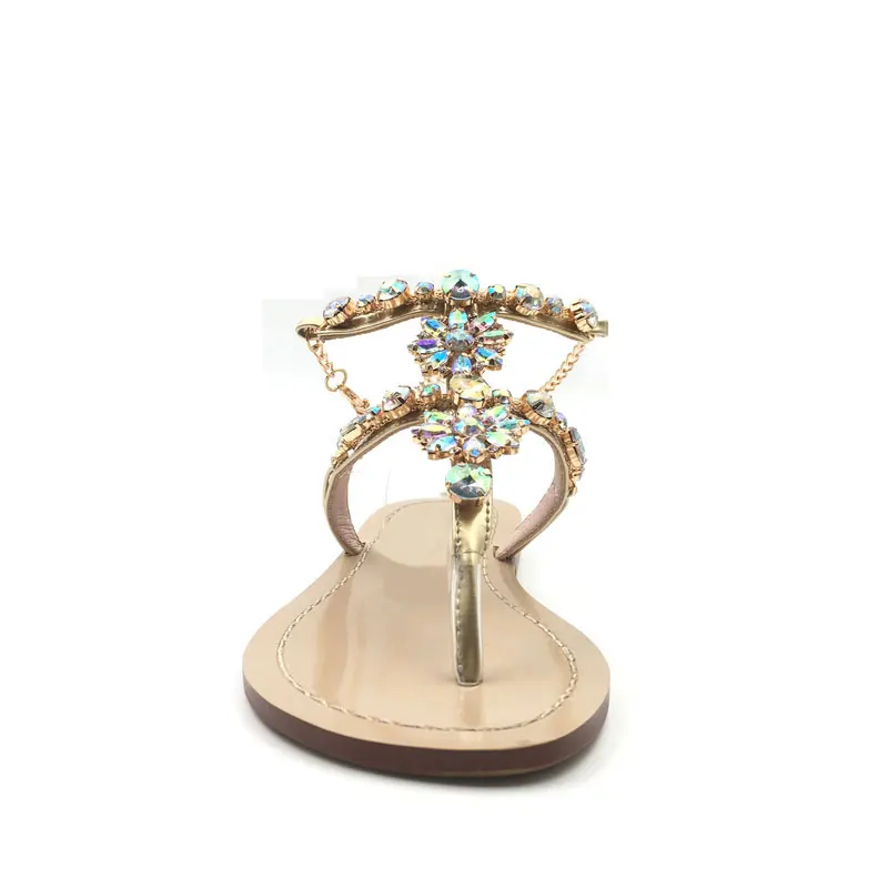 Sale HUALUN High heels shoes woman sandals women Rhinestones Chains Flat Sandals plus size Thong Flat sa