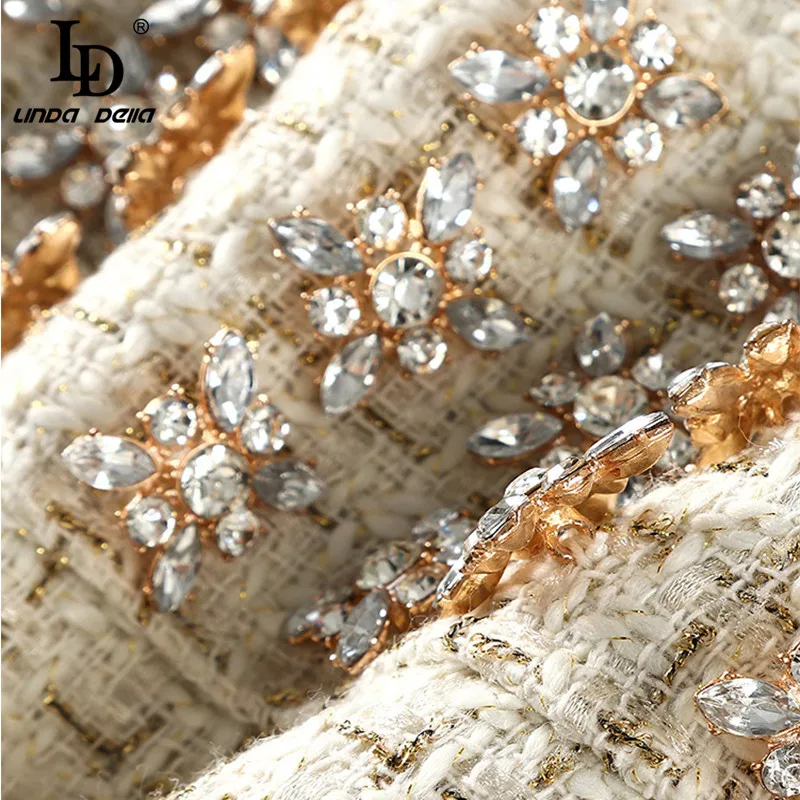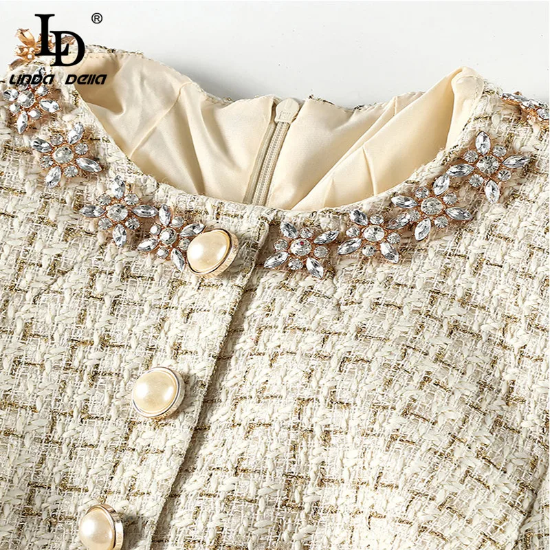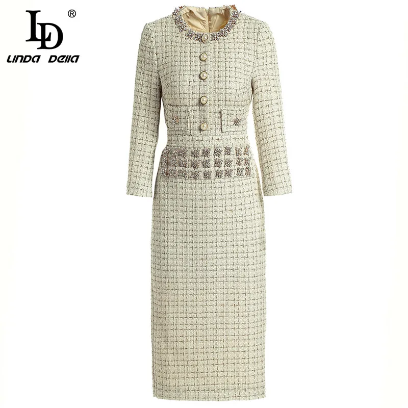 NEW LD LINDA DELLA Fashion Runway Autumn Winter Dresses Women's Long Sleeve Gorgeous crystal Beading Vi