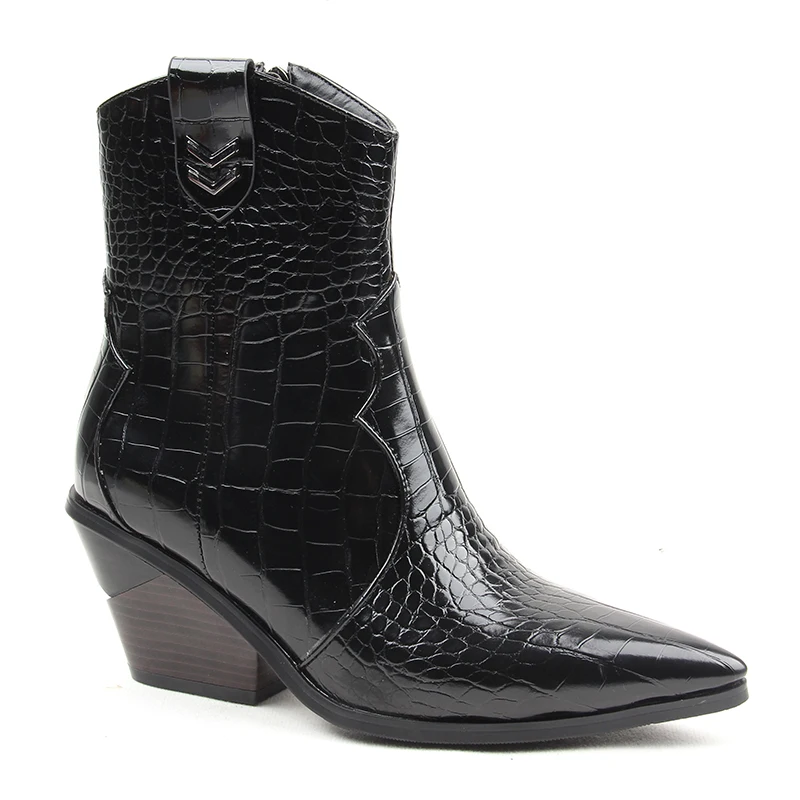 Get Brand Fashion Embossed Microfiber Leather Women's Ankle Boots Pointed Toe Western Cowboy Boots Wome