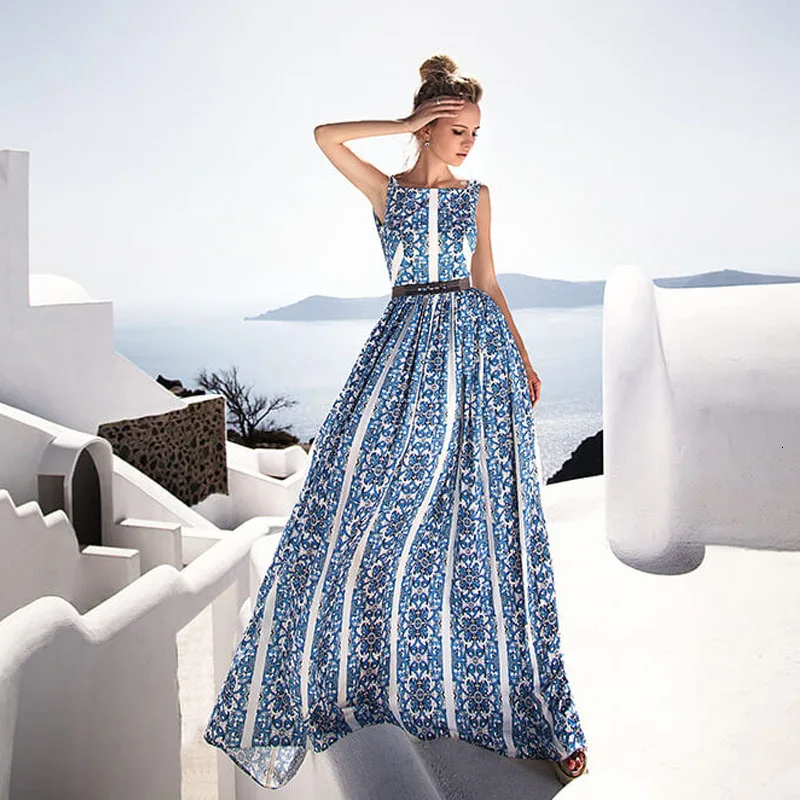 Get Fashion Office Lady Maxi Party Club Dresses For Women Solid O Neck Summer Dresses Sleeveless Maxi L