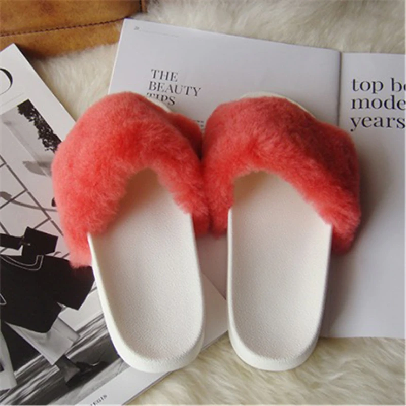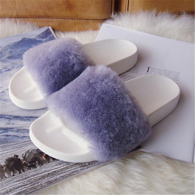 NEW Fur Flat Slippers Wool Women Summer Shoes Indoor Fuzzy Plush Ladies Shoes 2019 New Outdoor Fluffy S
