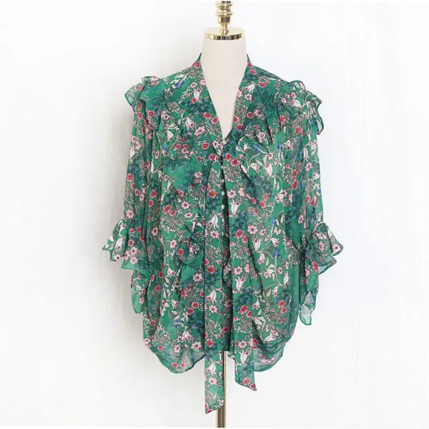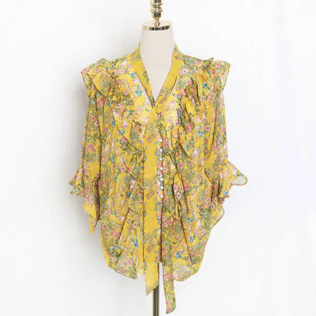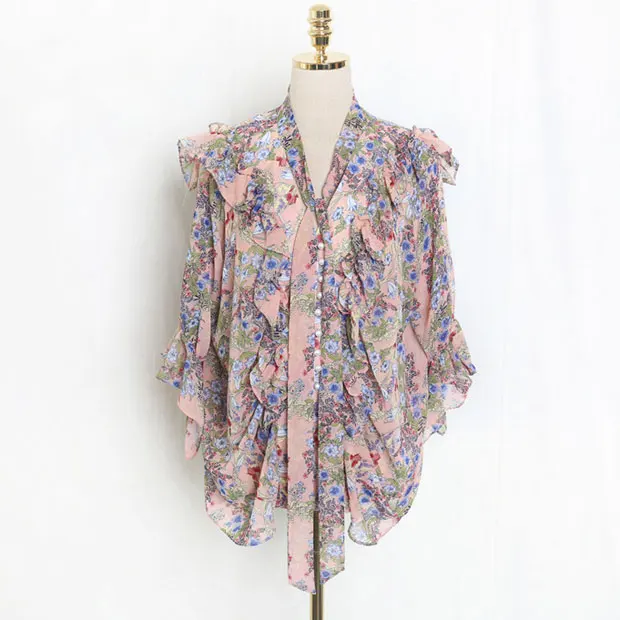Hot J41581 One Size Women Chiffon Shirt Casual Fashion Sweet Small Floral Printed Tshirt Factory direct