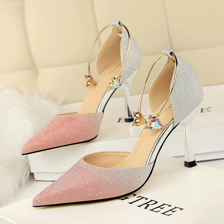Buy Most Shinny Glitter Wedding Shoes Open Bling Pointed Toe Pumps Bridesmaid High Heel Platform Party