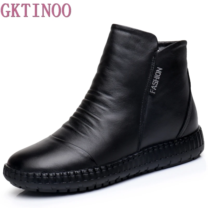 Buy New 2020 Autumn Fashion Women Genuine Leather Boots Handmade Vintage Flat Ankle Botines Shoes Woman