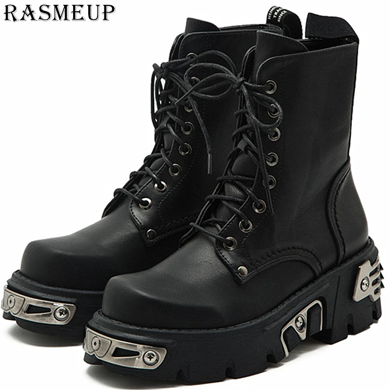Get RASMEUP 6CM Punk Style Platform Women Ankle Boots 2019 Women's Motorcycle Boot Fashion Ladies Chunk