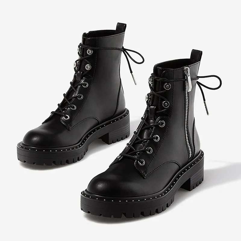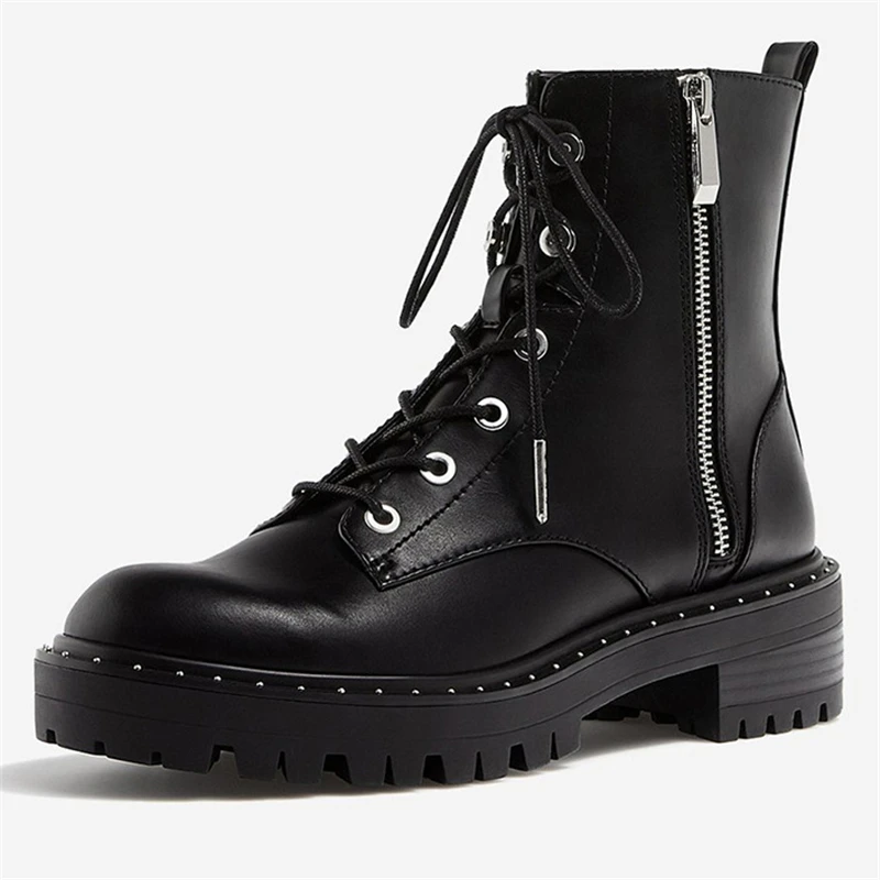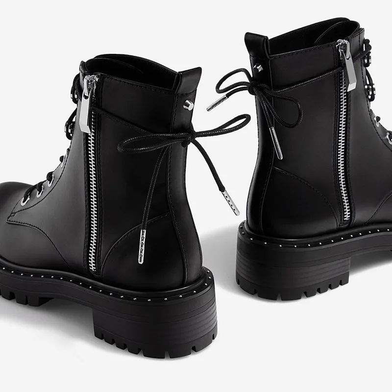 Sale RASMEUP Leather Women's Martin Boots 2019 Fashion Rivets Ankle Boots For Women Winter Warm Short Pl