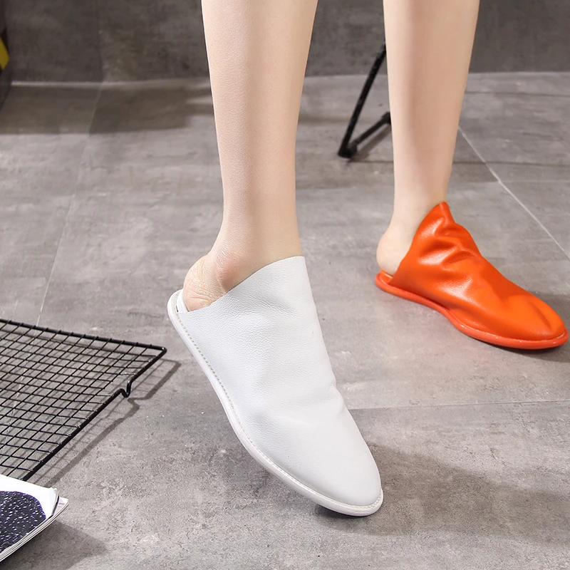 Buy Slippers Genuine Leather Women Shoes Flat Soft Green Orange Pink Shoes Fashion Slides Summer Outdoo
