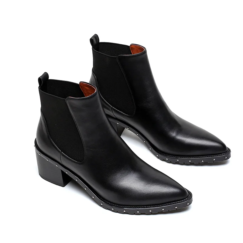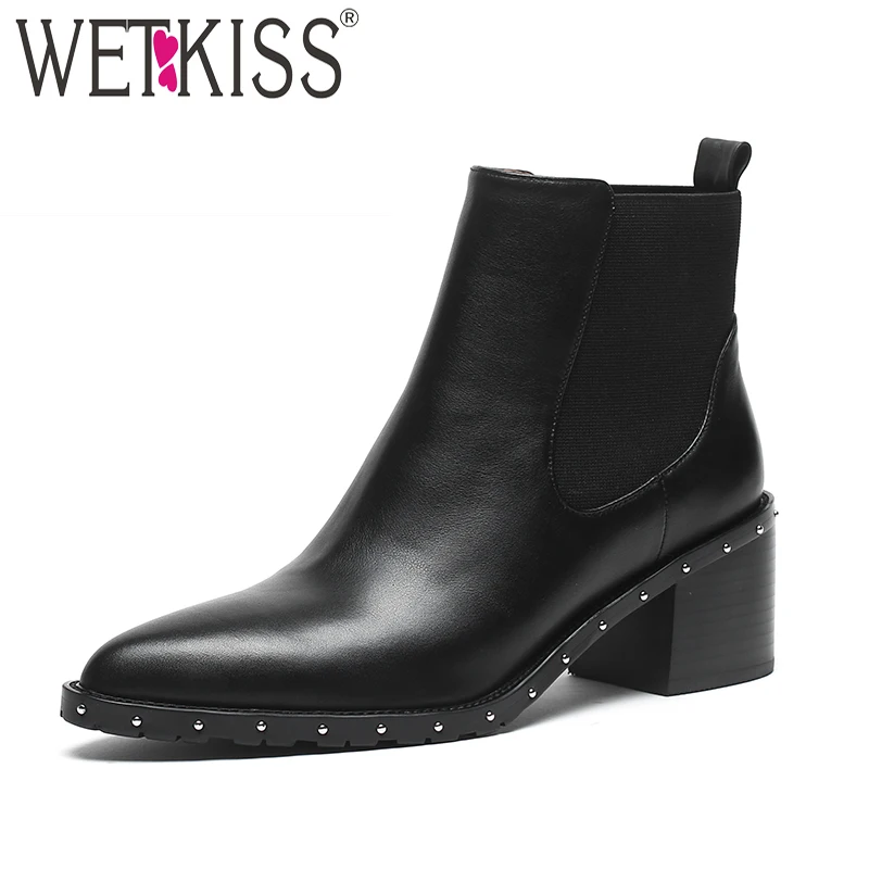 Buy WETKISS High Heels Women Chelsea Boots Zip Pointed Toe Footwear Rivet Female Ankle Boot Fashion Sho