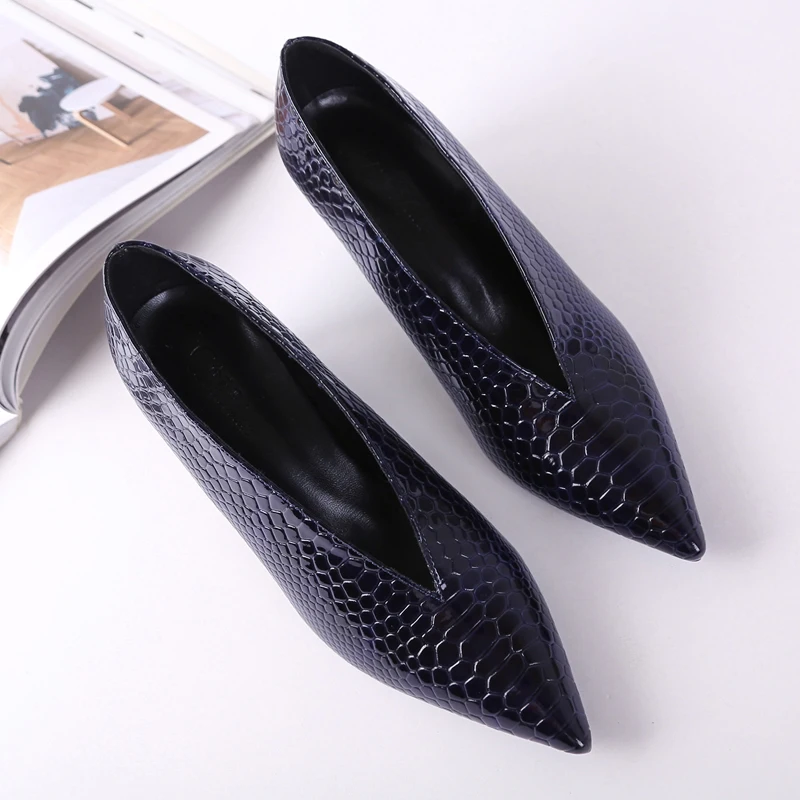 Discount XGRAVITY Crocodile Pattern Designer Vintage Evening Shoes Ladies Fashion Pointed Toe V Cut Woman Sh