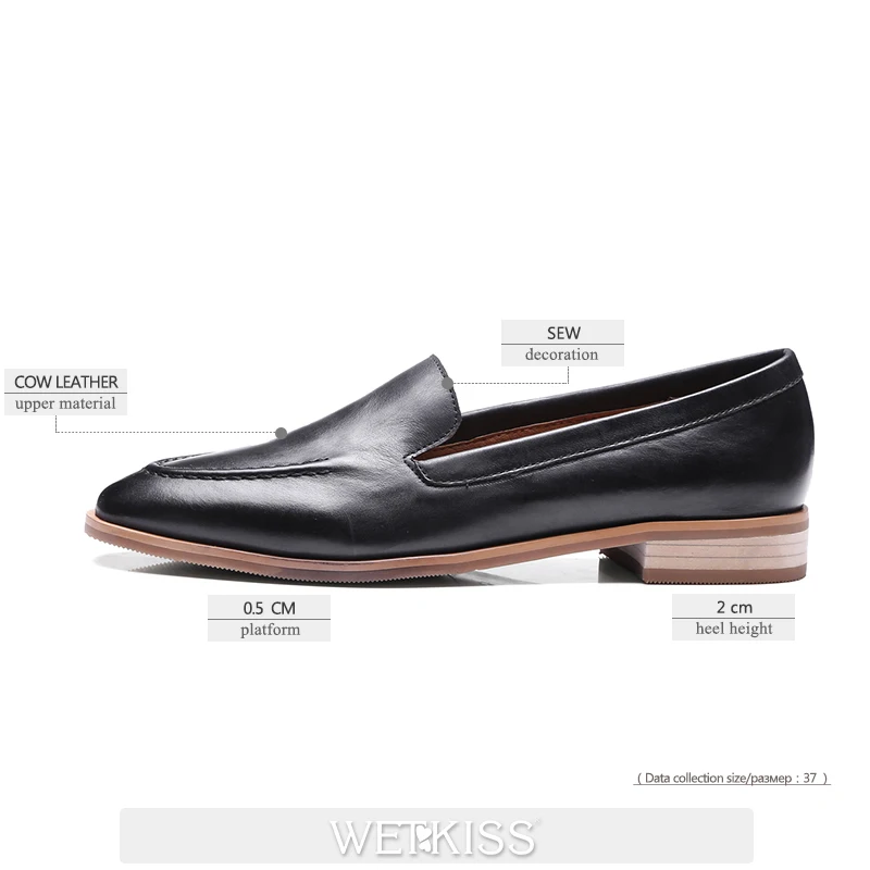 Get WETKISS New Arrival Genuine Leather Women Flats Slip On Square Toe Sewing Footwear Autumn Fashion C