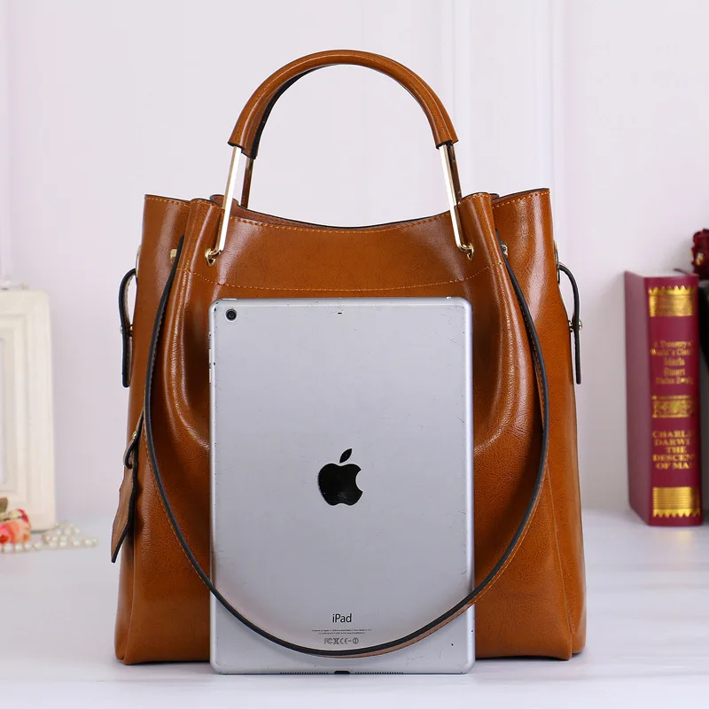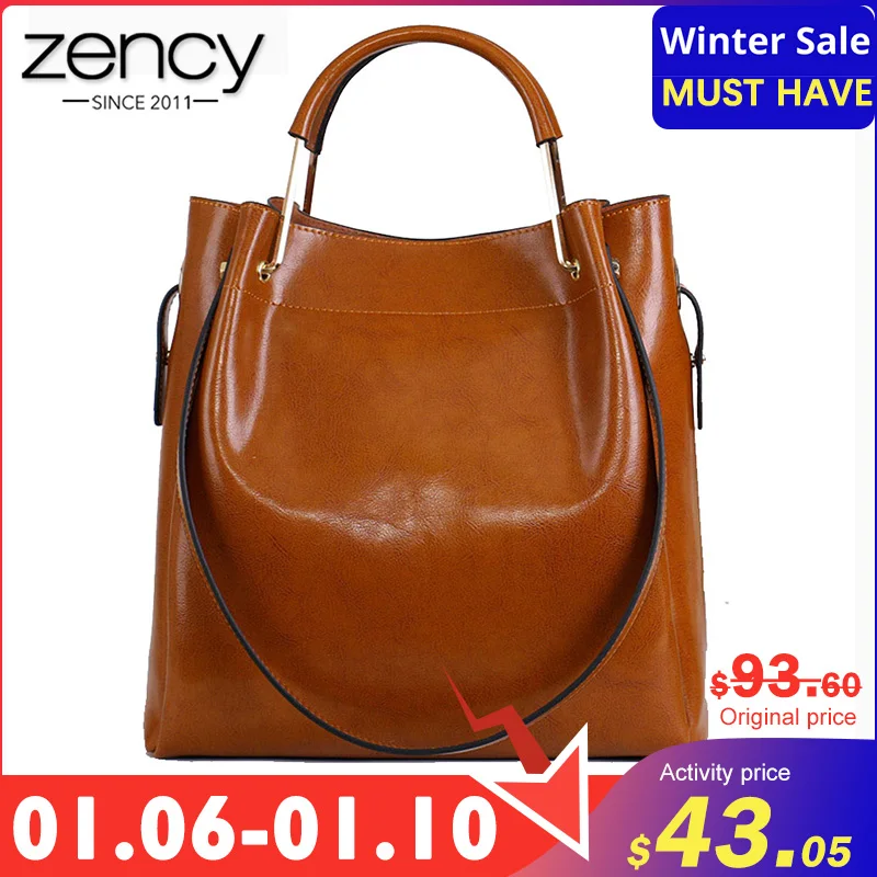 Get Zency Fashion Brown 100% Genuine Leather Women Handbag Simple Travel Tote Bag Large Capacity Lady S