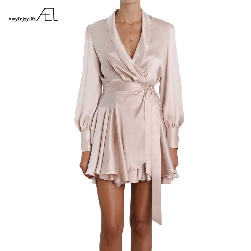 Hot AEL Summer Women Satin Dresses Sexy Fashion Femme Clothing 2018 Vestido Curto