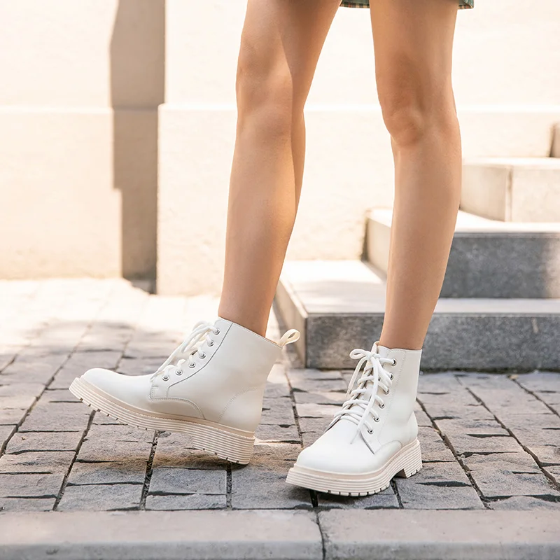 Buy BeauToday Ankle Boots Women Genuine Cow Leather Cross-Tied Round Toe Lady Fashion Boots Winter Plat