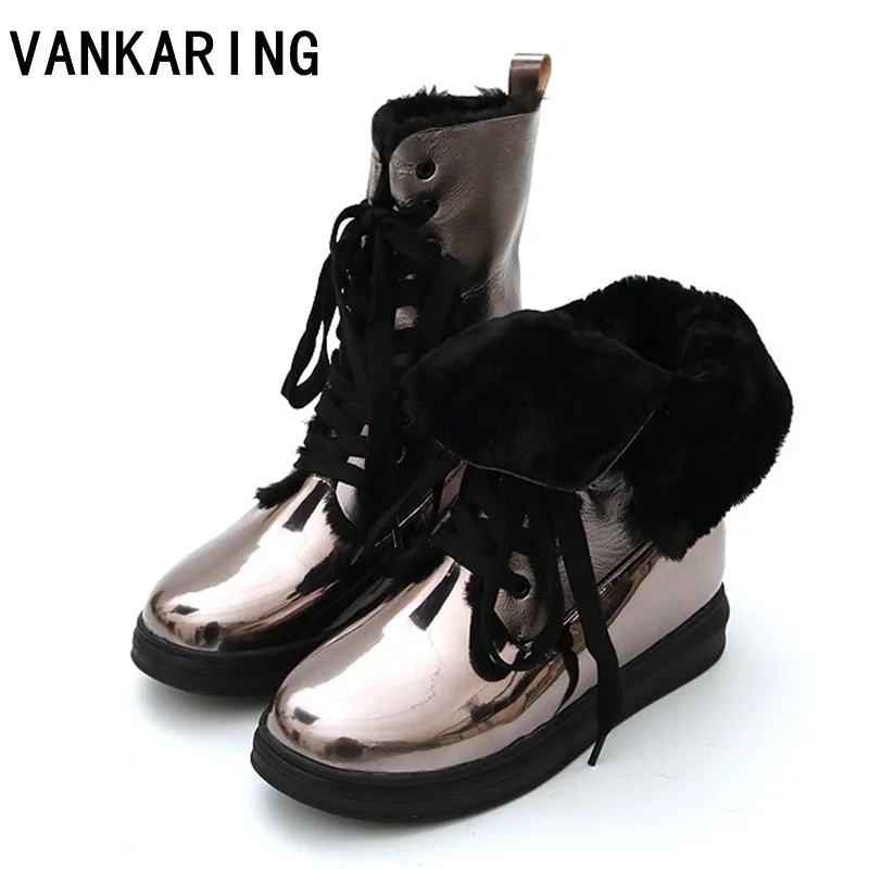 Get brand fashion faux fur winter snow boots women ankle boots warm shoes high quality flat round toe p