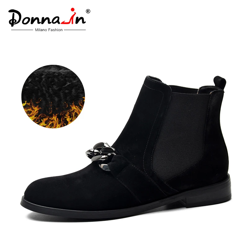 Sale Donna-in Chelsea Booties Women Genuine Leather Ankle Boots Metal Chains Natural Suede Low Heels Boo