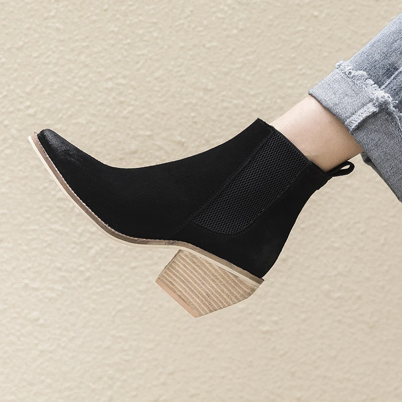 Buy Genuine Leather Ankle boots for women High heel boots Sexy Pointed Toe 2018 Winter Fashion shoes wo