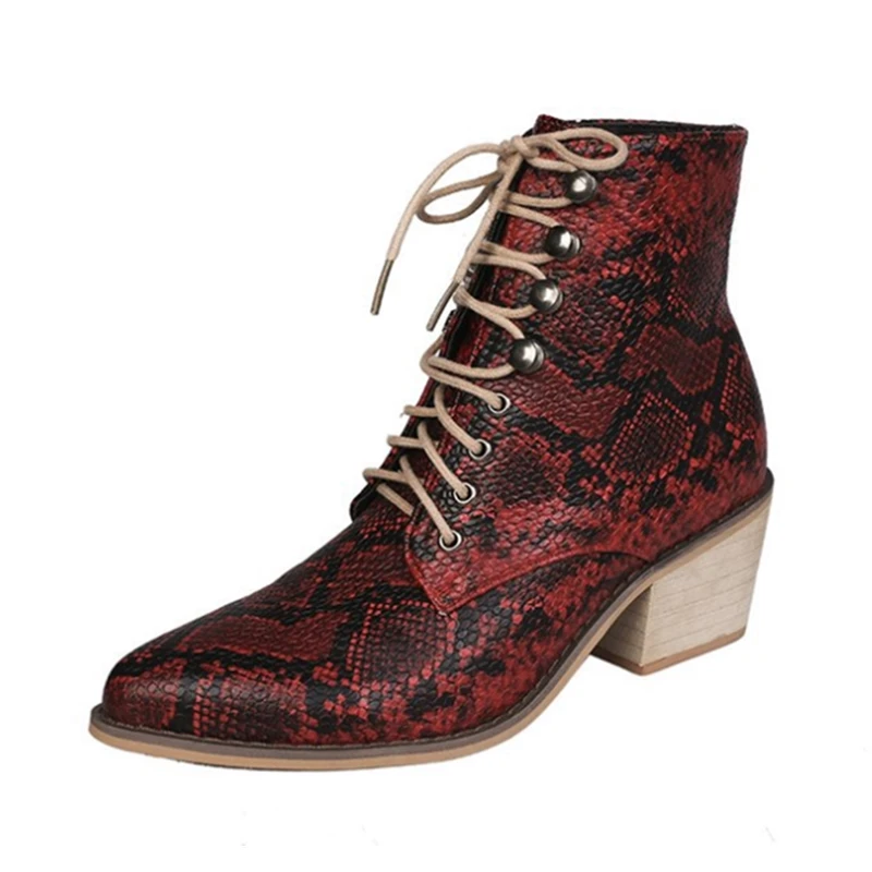 Get Ho Heave Women Boots Fashion Pointed Toe Women winter Boots Comfortable Square Heel Snake Print Sho