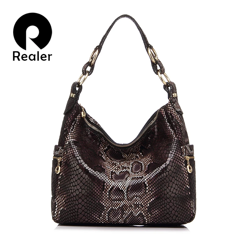 Buy REALER woman handbags genuine leather tote female classic serpentine prints classic shoulder crossb