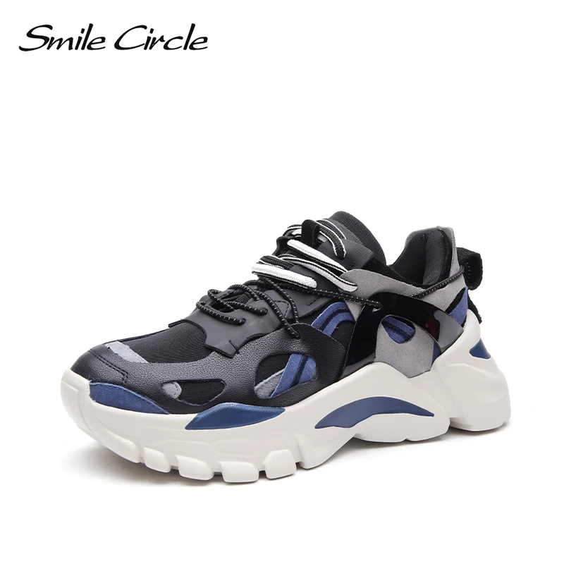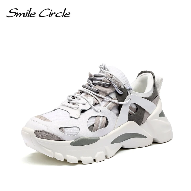 Hot Smile Circle Fashion Chunky sneakers Women shoes Flat Platform Sneaker Lace-up casual Shoes Thick b
