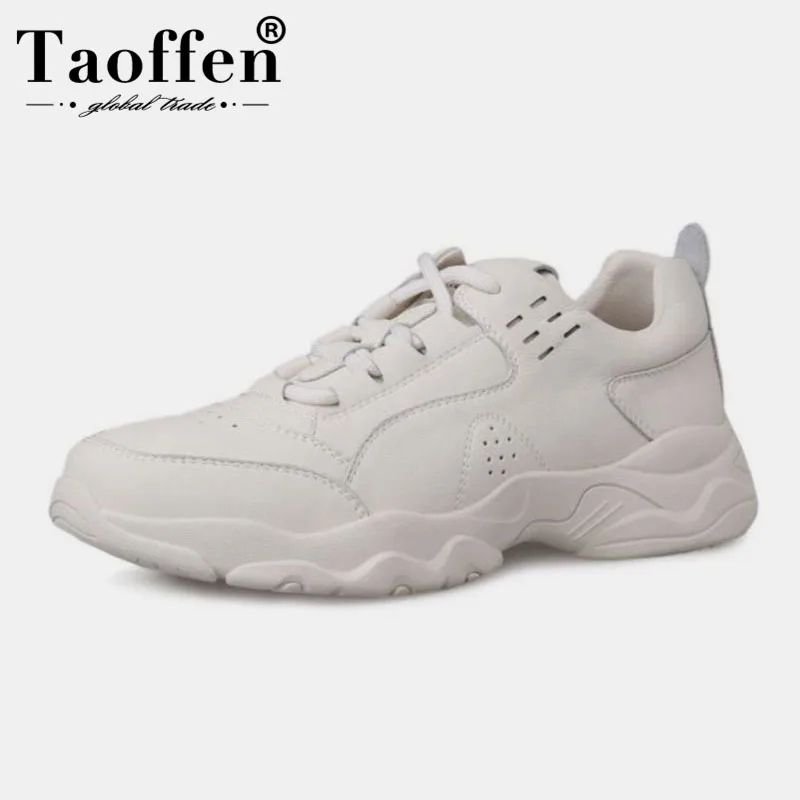 Discount Taoffen Women Real Leather Sneakers Shoes Fashion Vulcanized Women Shoes Lace Up Round Toe Casual W