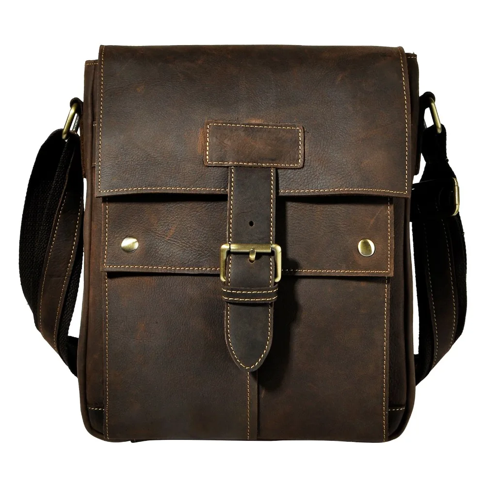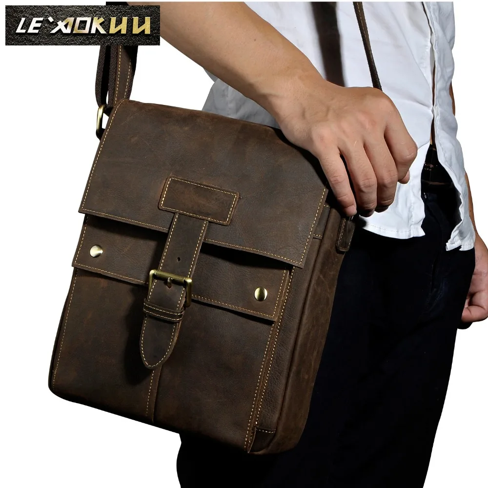 Buy Crazy horse leather Men Fashion Shoulder crossbody Messenger Bag Real leather Designer Mochila Univ