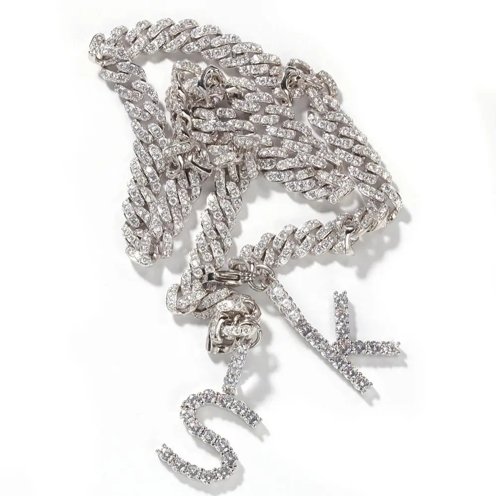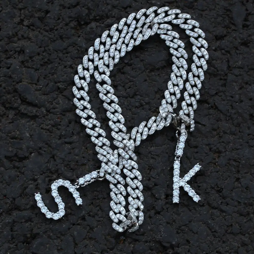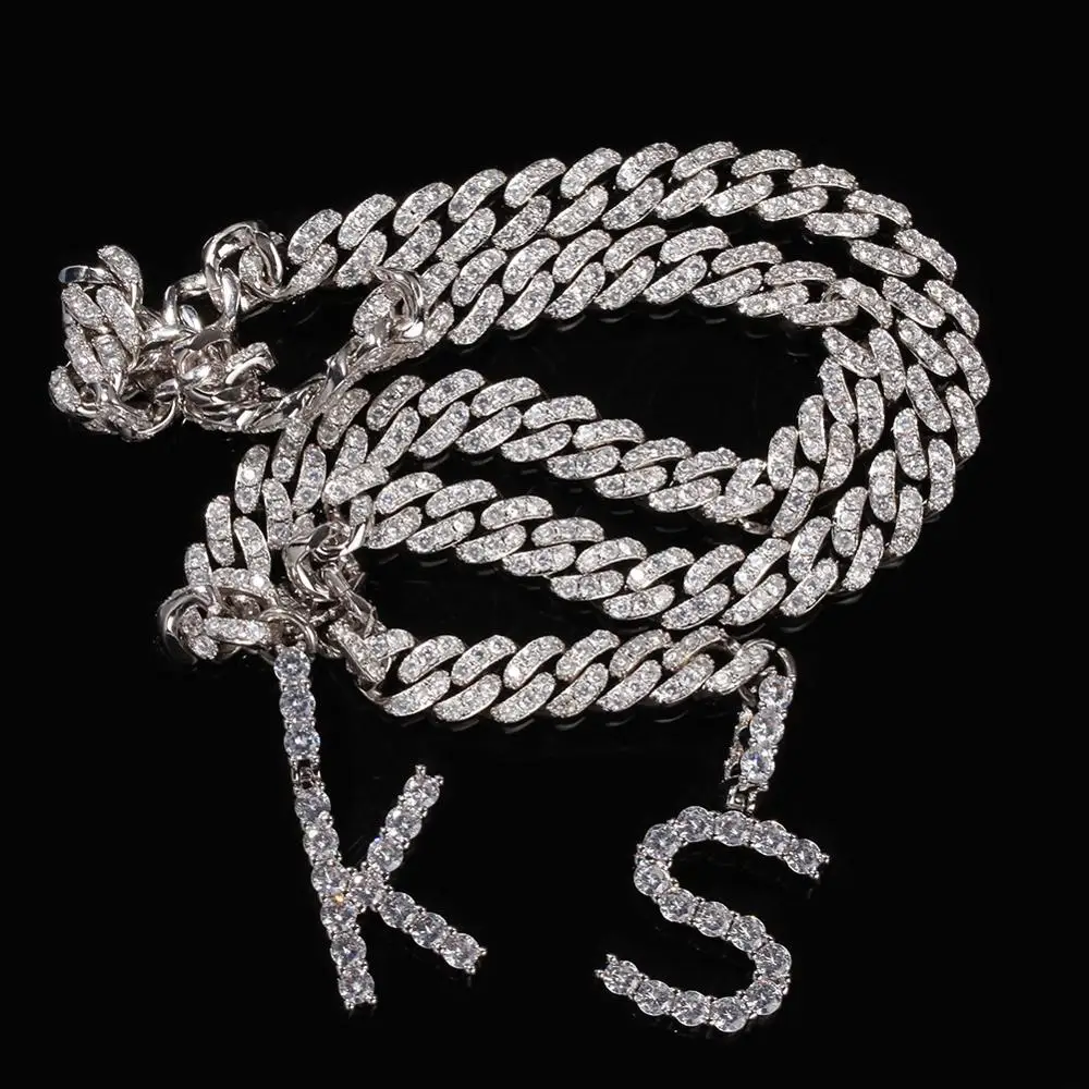 Discount Custom 2 Letters Cuban chain Pendants Necklace AAA CZ Stone Bling Iced Out Men Hip Hop Rapper Jewel
