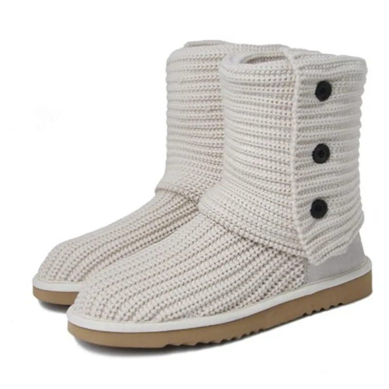 Hot Fashion Australian Style Women Snow Boots Knitting With 3-Buttons Winter Outdoor Lady Boots Brand I