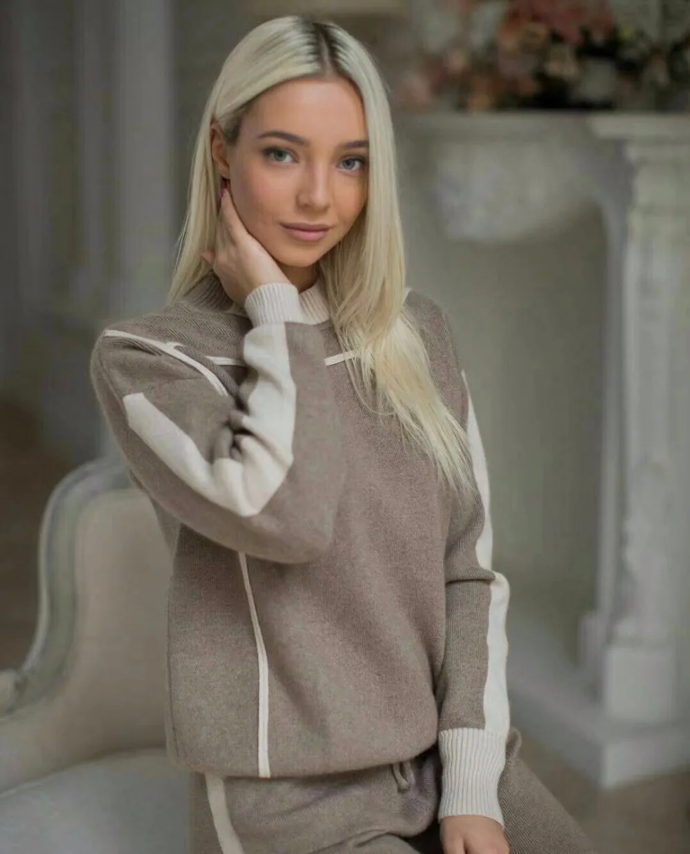 NEW Fashion brand Winter Woolen and Cashmere Knitted warm Suit hit color Sweater + Mink Cashmere Trouse