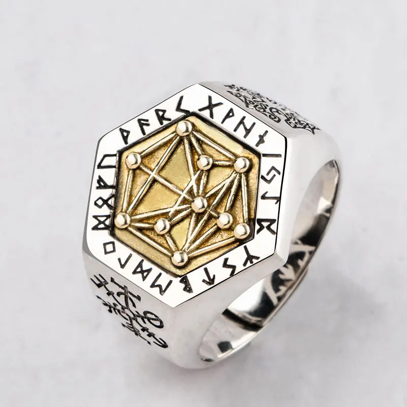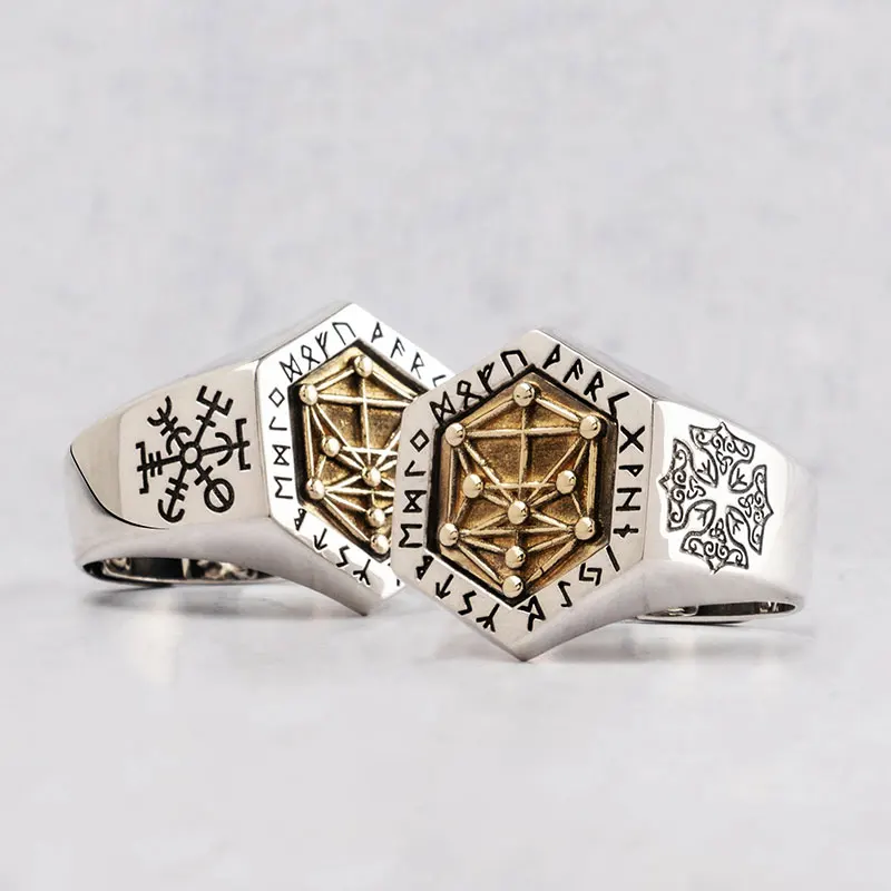 Get Nordic mythology Viking rune Sterling silver rings for man and women Kabala totem Index Ring fashio