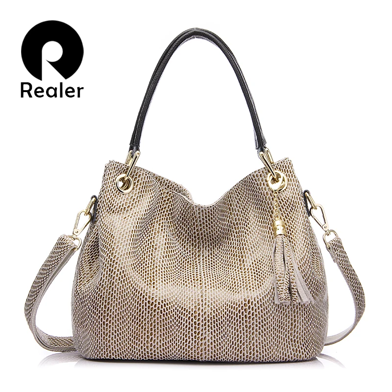 NEW Realer woman handbags genuine leather bag female hobos shoulder crossbody bags high quality leather