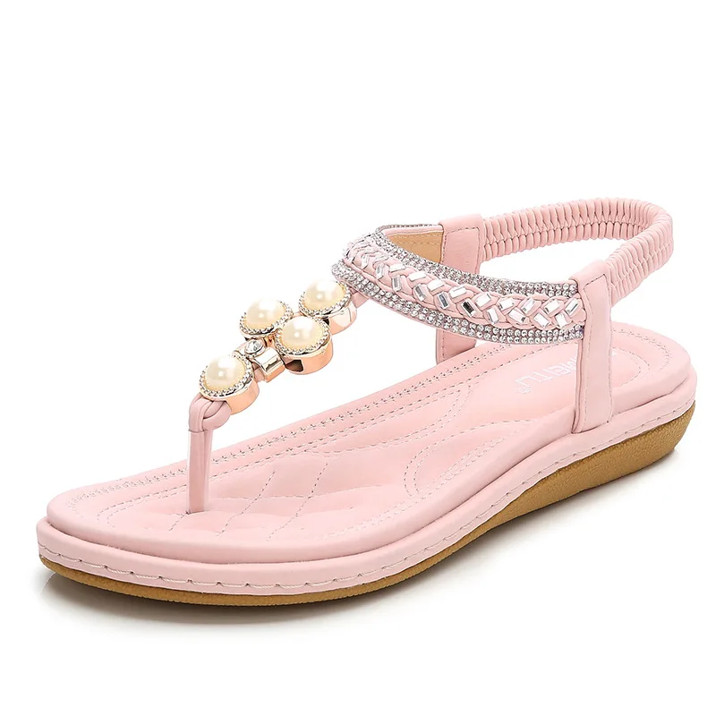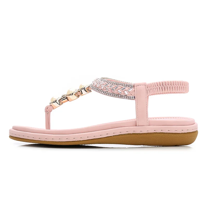 Discount Women casual sandals summer fashion sweet bohemia shoes with pearls beach sandals