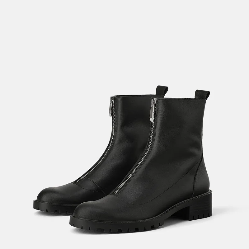 NEW Women Platform Martin Boots Front Zipper Ankle Boots for Women 2019 Fashion Chunky Heels Women Boot