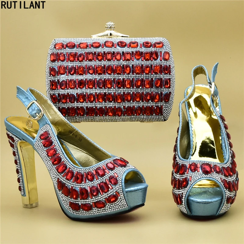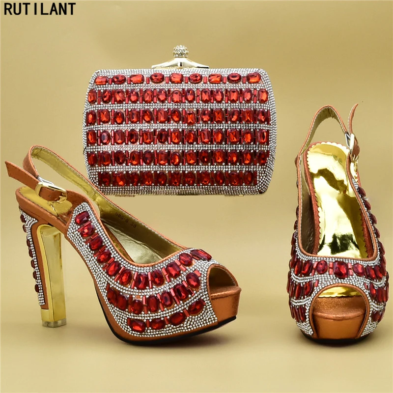 Sale New Fashion African Women Shoes Bags Set 2019 Party Shoes and Bag Set Decorated with Rhinestone Wom