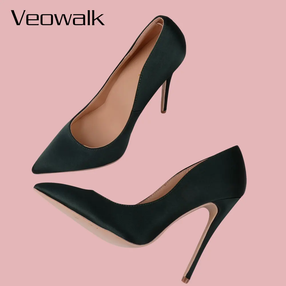 Discount Veowalk Brand Silk Upper Women Sexy High Heels Elegant Lady Pointed Toe Party Pumps Woman Comfort D