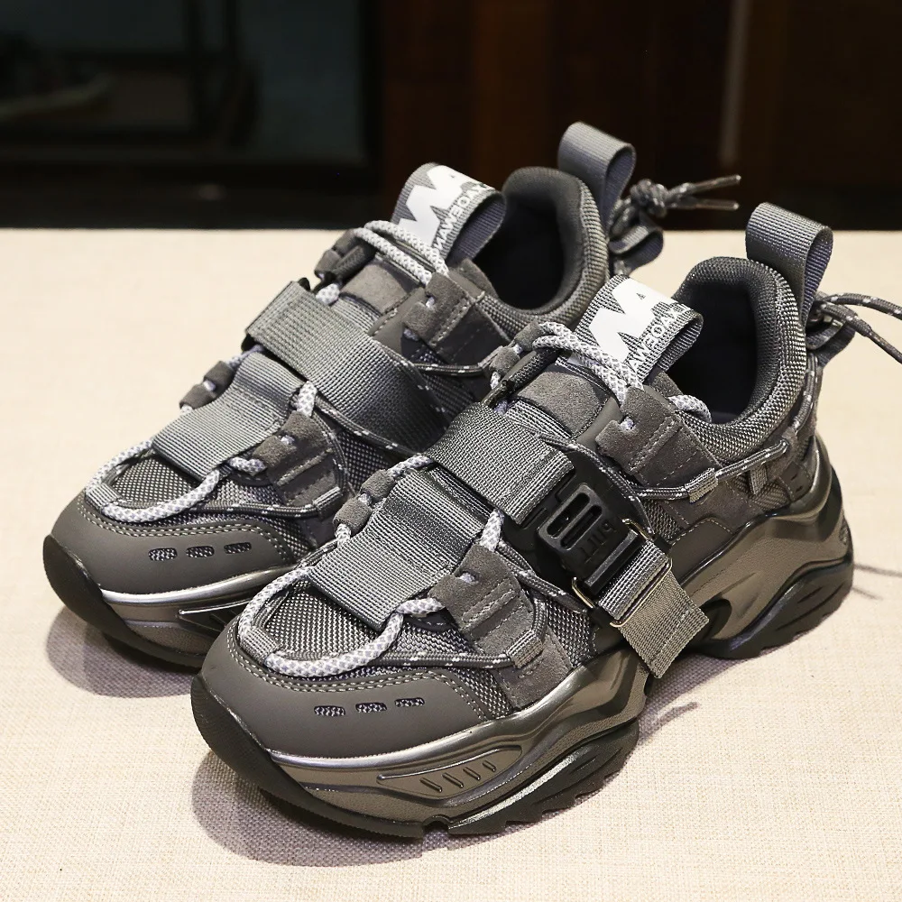 Discount Autumn Fashion Platform Casual Shoes Women's New Round Head Genuine Leather Color Matching Buckle I