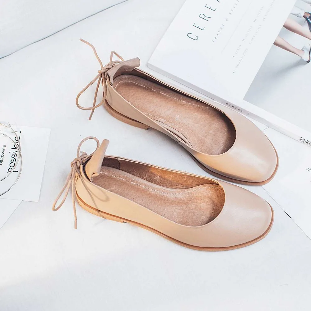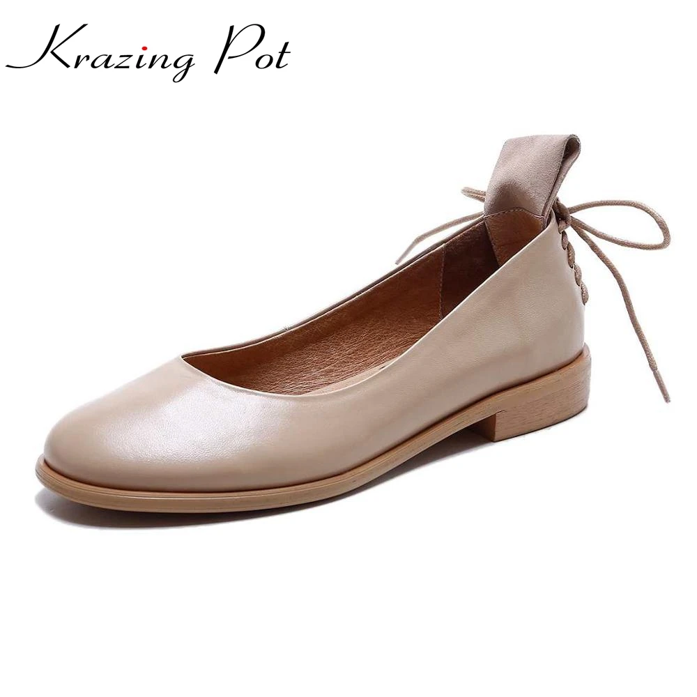 Sale Krazing Pot fashion brand shoes genuine leather slip on round toe preppy style low heel bowtie wome