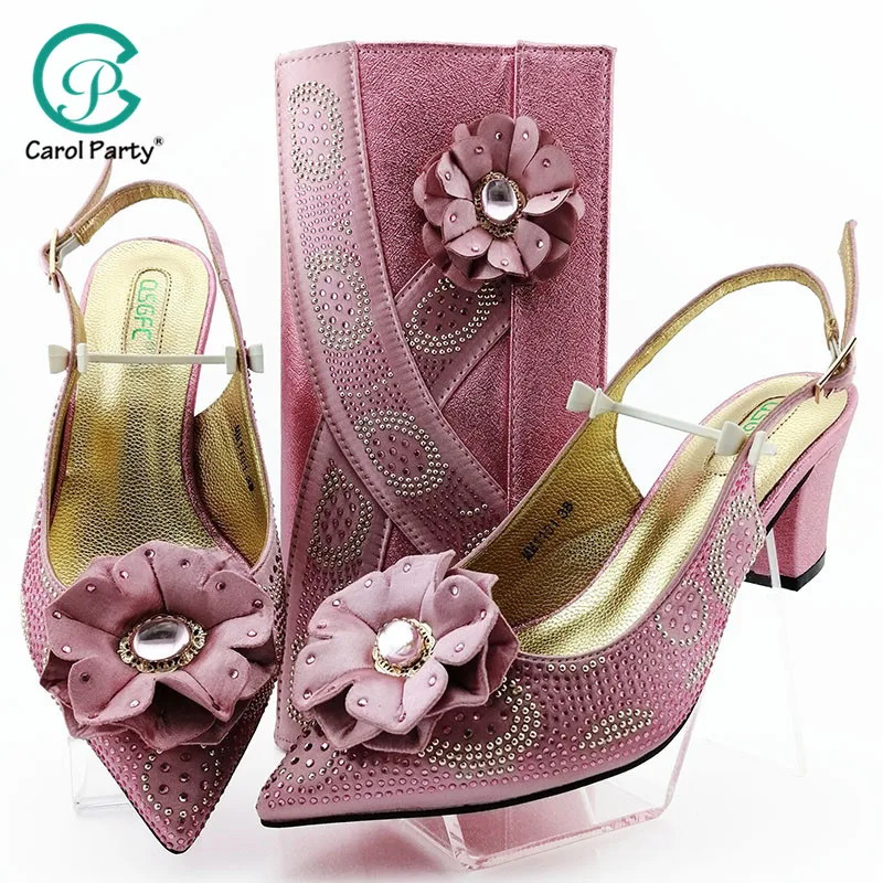 Buy Pink Shoes and Bag African Sets Italian lady shoes with Matching Bags Nigerian Women Shoes and Bag