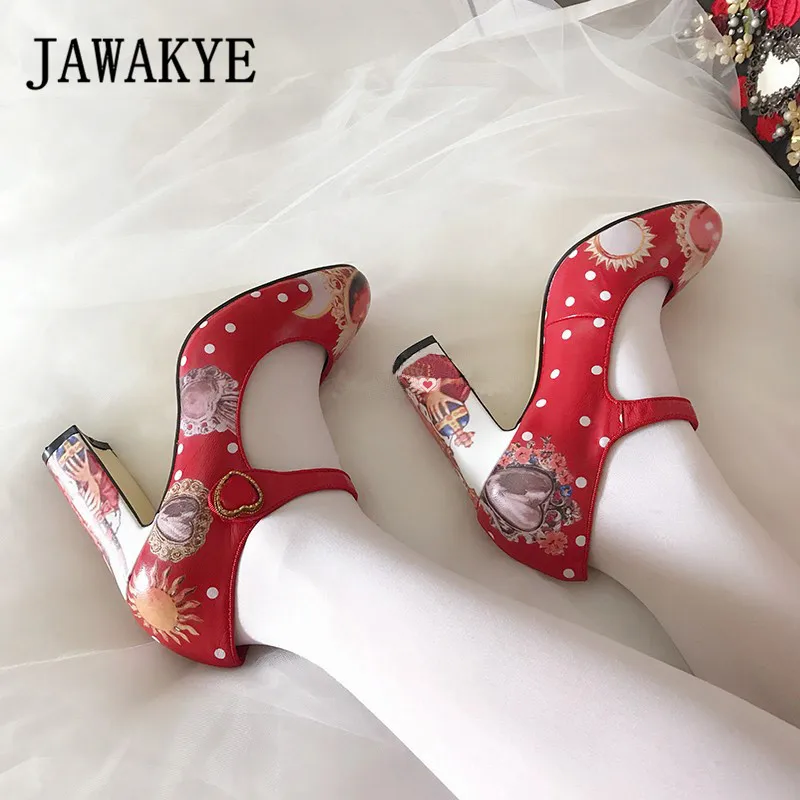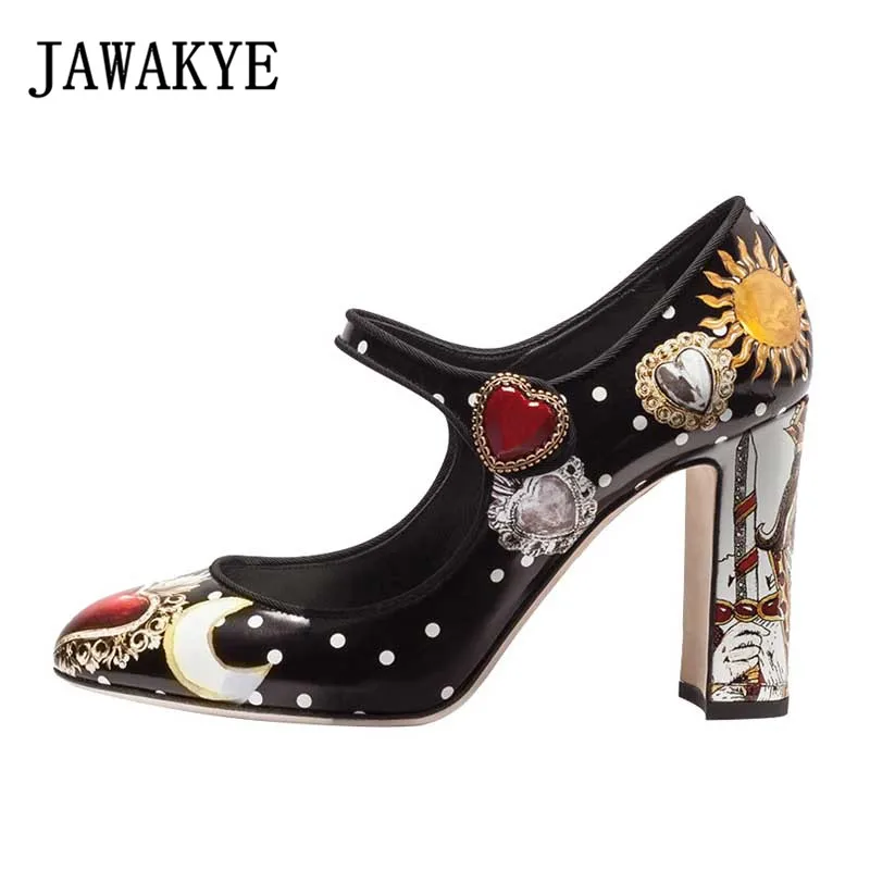 NEW Spring summer rhinestone pumps Women printed flowers high heels 2019 runway design love heart brida