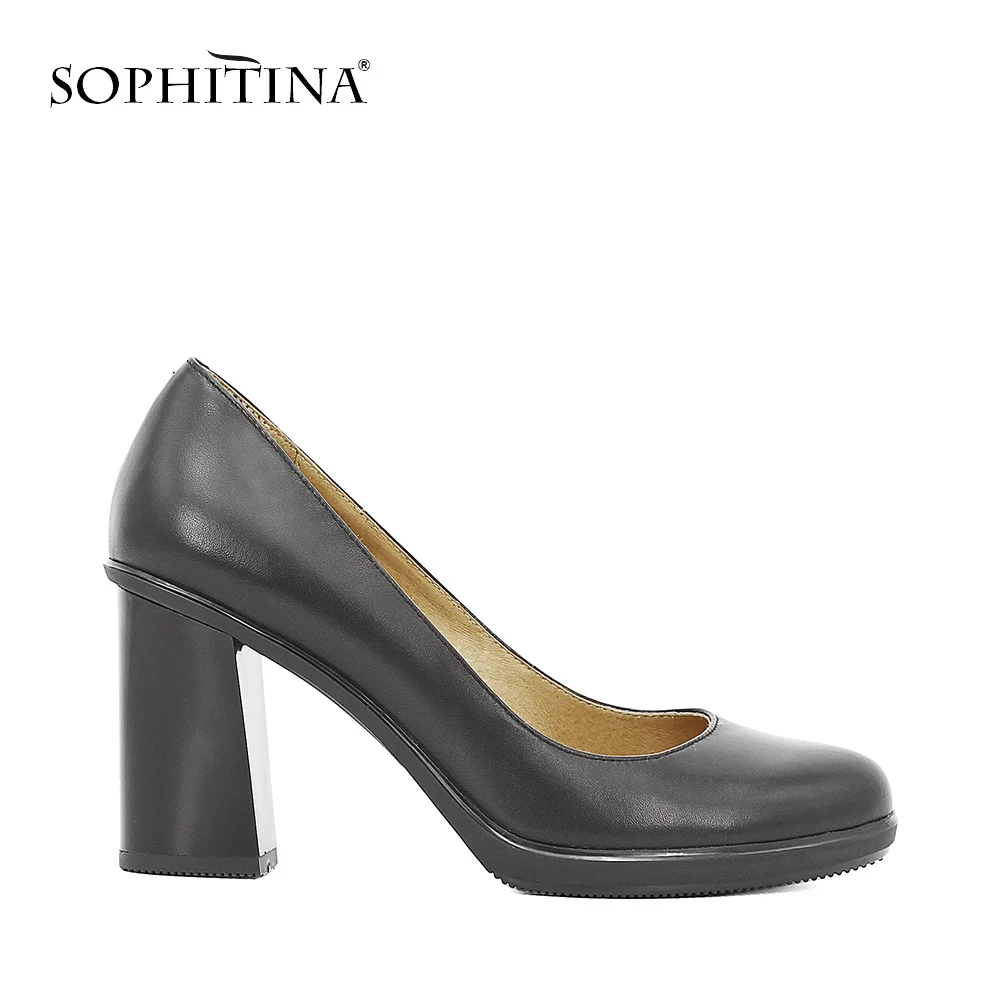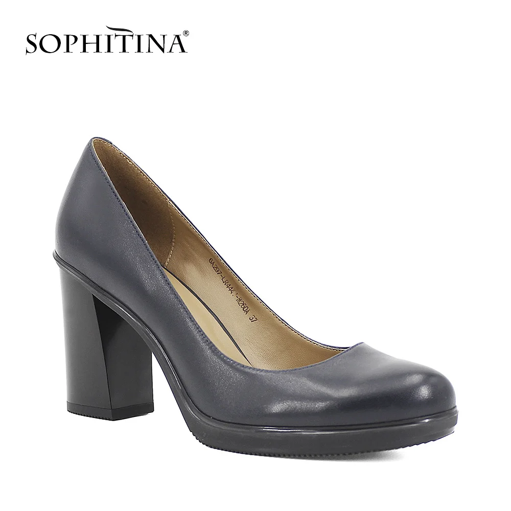 Get SOPHITINA Elegant Lady Pumps High Quality Genuine Leather Round Toe High Thick Heels Platform Party