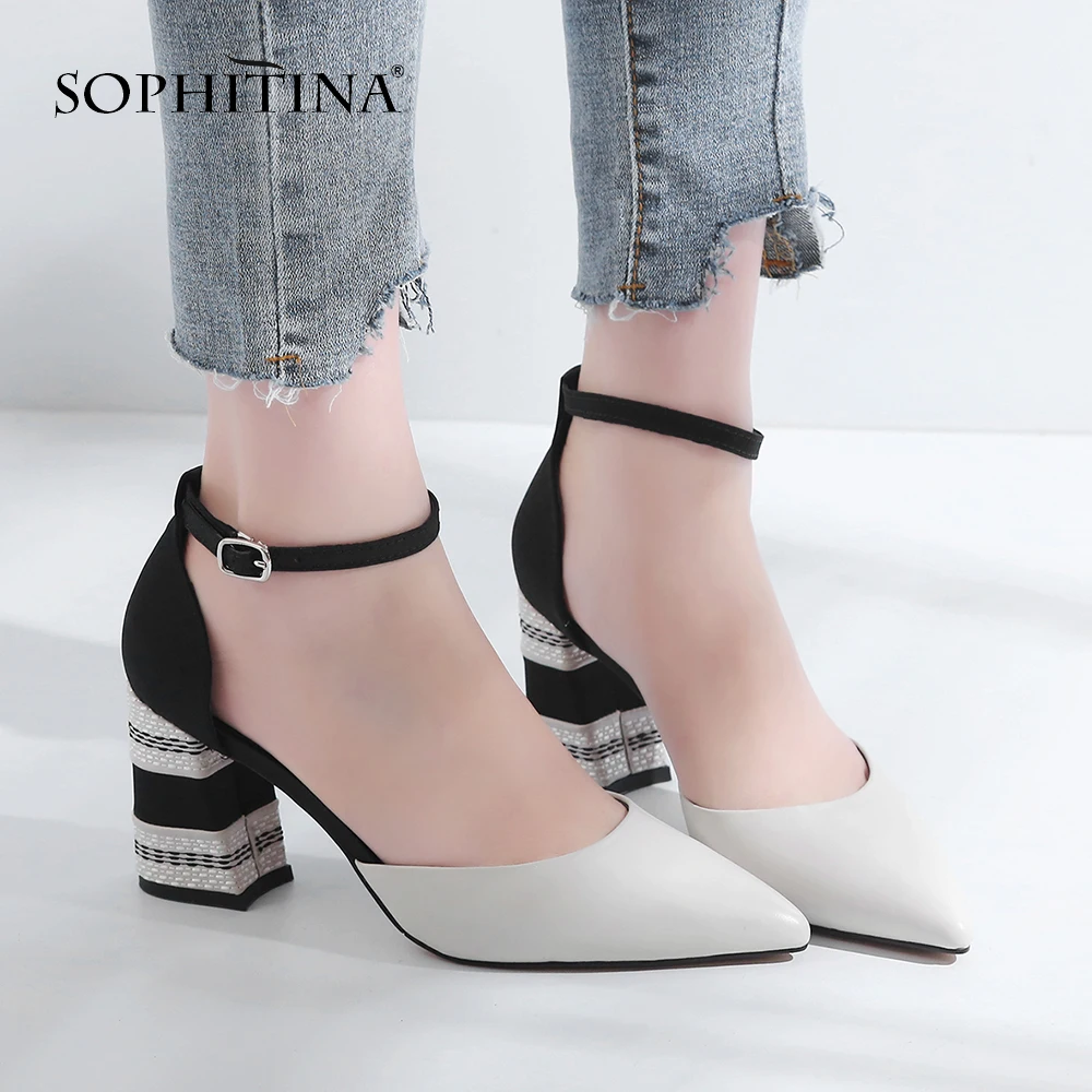 Get SOPHITINA Women's Party Pumps High Square Heel Cow Leather Pointed Toe Buckle Strap Summer Shoes Ha