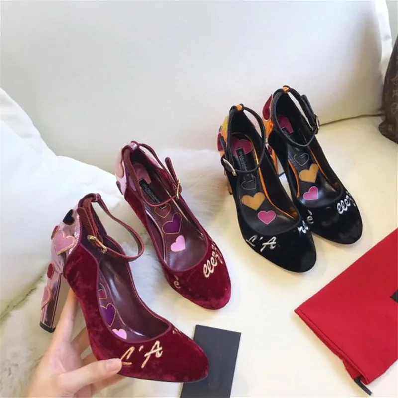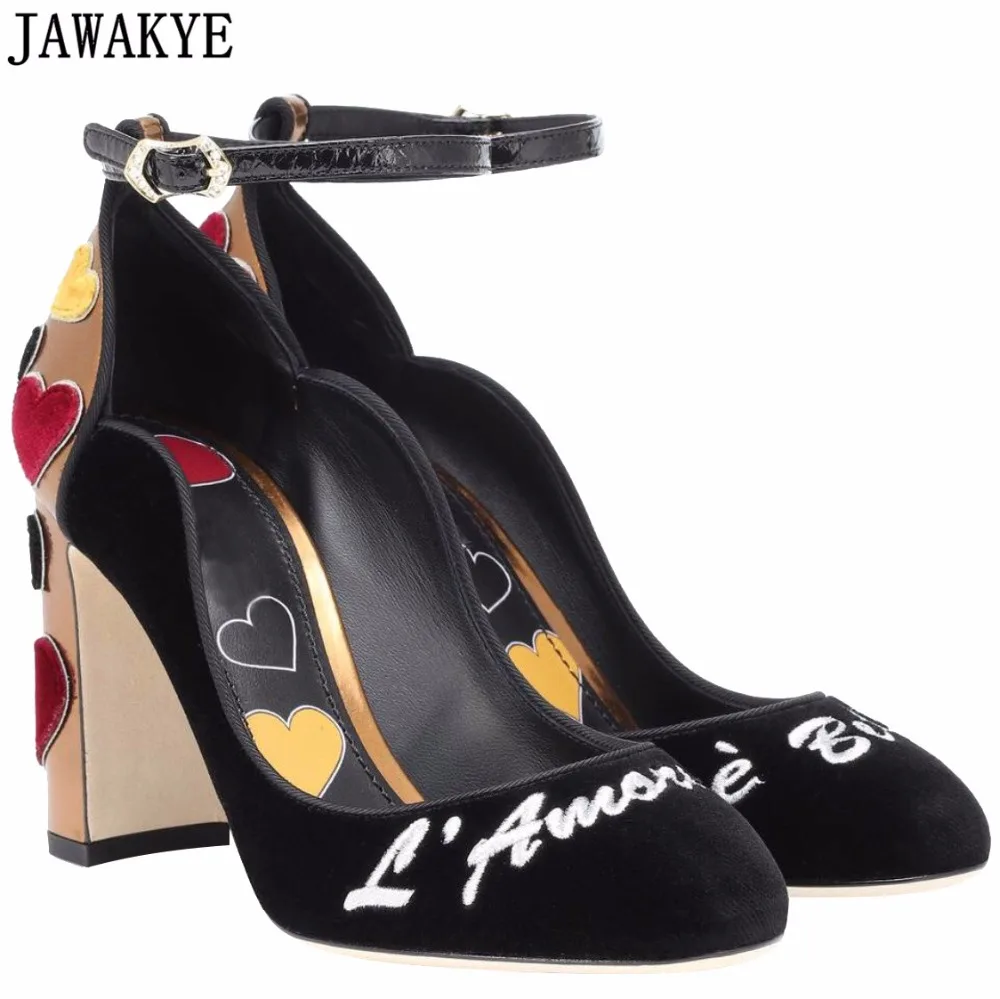 Get Excellent Embroidery wedding shoes women Love Heart high Heel real leather Round Toe Buckled strap