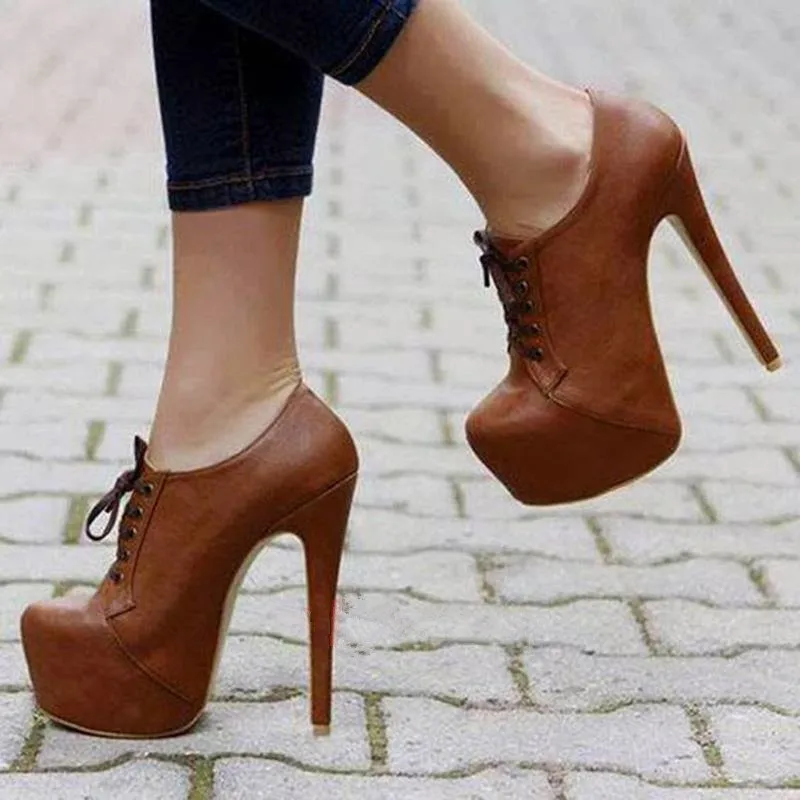Get GOOFLORON Women's high heels 16cm fashion sexy camel heels shoes instep lacing over heels