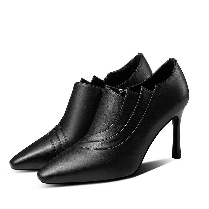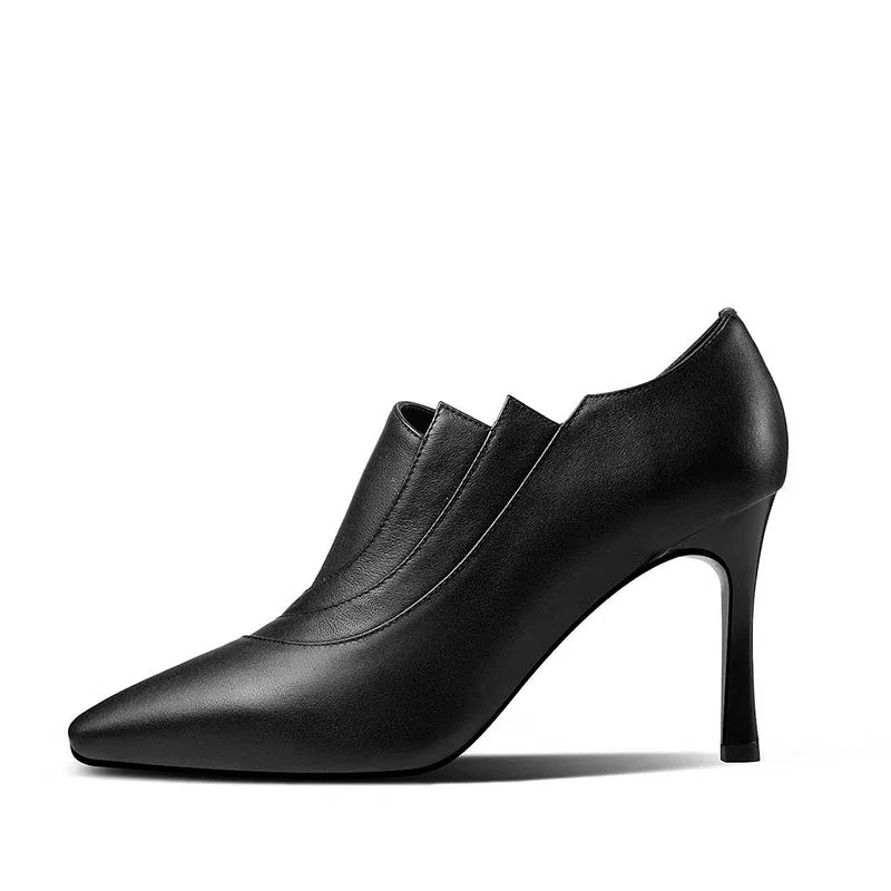 Discount ISNOM Thin Heels High Pumps Women Zip Cow Leather Pumps Office Shoes Female Fashion Pointed Toe OL